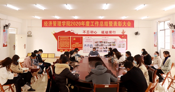 為了總結(jié)工作成績,樹立典型,表彰先進,同時部署2021年度工作,經(jīng)濟管理學(xué)院于2021年1月21日下午在學(xué)院會議室舉行2020年度工作總結(jié)暨表彰大會。校黨委宣傳部部長、副校長彭高彬出席大會并講話。經(jīng)濟管理學(xué)院全體教師參加了會議,大會由韋張惠老師主持。