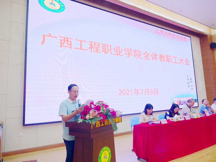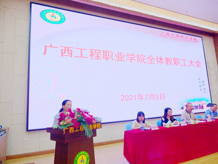 7月5日,我校在圖文信息大樓學(xué)術(shù)報(bào)告廳召開(kāi)全體教職工會(huì)議,學(xué)校黨委副書(shū)記、副校長(zhǎng)胡細(xì)木,黨委委員、副校長(zhǎng)、宣傳部部長(zhǎng)彭高彬,副校長(zhǎng)吳先夏、羅艷妮、黃德偉,校長(zhǎng)助理黃秋霞出席大會(huì)。大會(huì)主要內(nèi)容為傳達(dá)學(xué)習(xí)習(xí)近平總書(shū)記在慶祝中國(guó)共產(chǎn)黨成立100周年大會(huì)上重要講話、深入學(xué)習(xí)貫徹黨的教育方針動(dòng)員教育、師德師風(fēng)微黨課學(xué)習(xí)、暑期安全教育等。羅艷妮副校長(zhǎng)主持會(huì)議。全體教職工參加會(huì)議。
