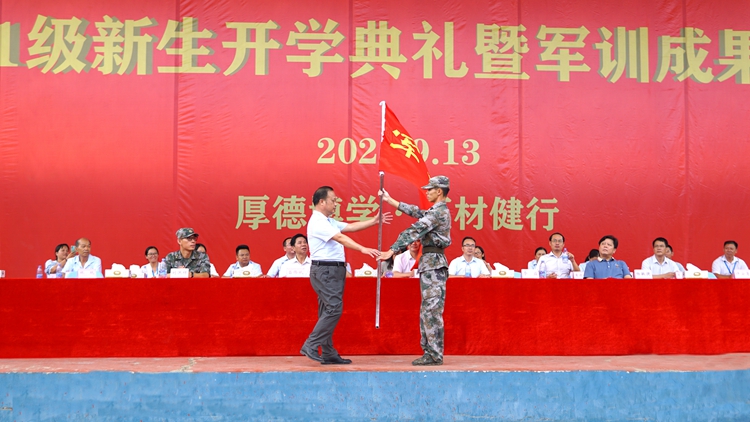 最后,廣西綠盾?chē)?guó)防教育基地總教官唐森林向?qū)W校紀(jì)委書(shū)記李益轉(zhuǎn)交軍訓(xùn)團(tuán)團(tuán)旗,廣西工程職業(yè)學(xué)院2021級(jí)新生開(kāi)學(xué)典禮暨軍訓(xùn)成果匯報(bào)會(huì)圓滿(mǎn)結(jié)束。