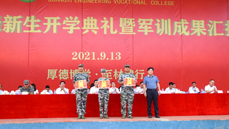 9月13日上午,廣西工程職業(yè)學(xué)院2021級(jí)新生開(kāi)學(xué)典禮暨軍訓(xùn)成果匯報(bào)會(huì)在學(xué)校運(yùn)動(dòng)場(chǎng)隆重舉行。