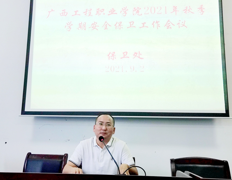 按照學(xué)校年度工作總體安排部署,為確保廣大師生的生命安全,落實(shí)疫情防控常態(tài)化條件下的各項(xiàng)安保措施,確保校園的安全穩(wěn)定。9月2日下午,保衛(wèi)處在圖書館學(xué)術(shù)報(bào)告廳召開2021年秋季學(xué)期安全保衛(wèi)工作會議,校黨委委員、副校長彭高彬出席會議并作重要講話,全體安保人員參加了會議。會議由保衛(wèi)處李捷副處長主持。
