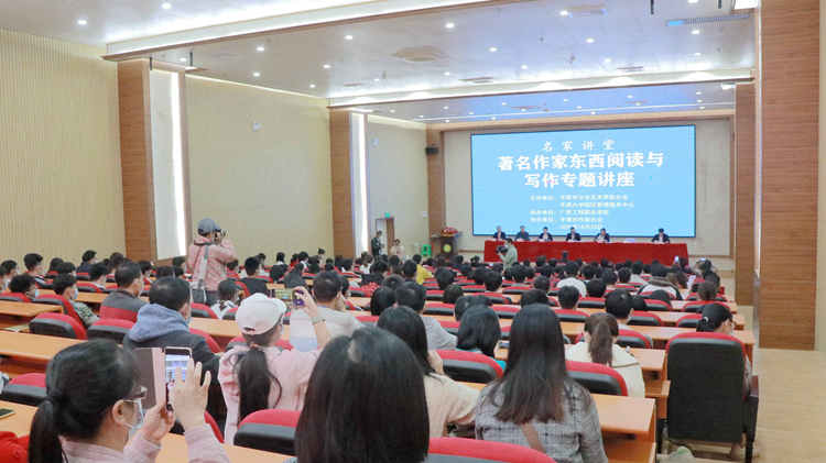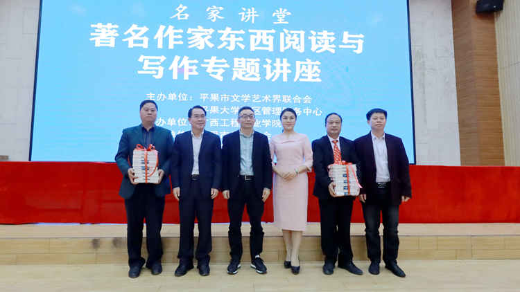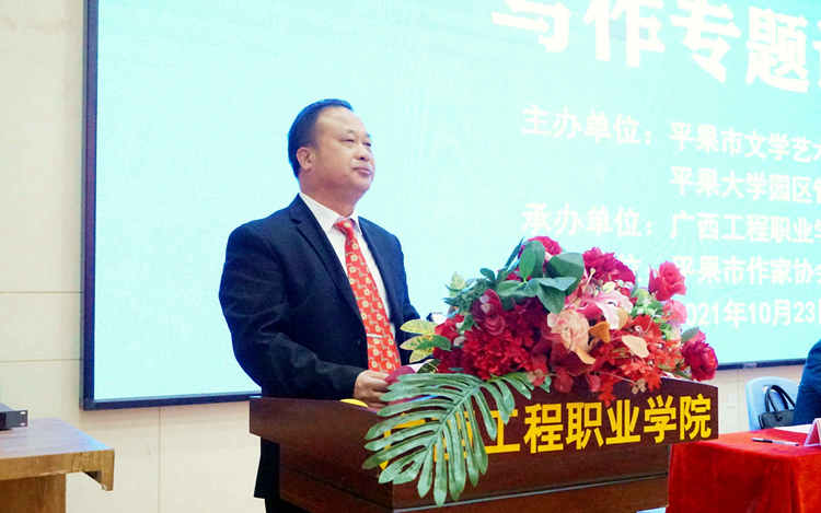 2021年10月23日上午,由平果市文學(xué)藝術(shù)界聯(lián)合會、平果市大學(xué)園區(qū)管理服務(wù)中心主辦,廣西工程職業(yè)學(xué)院承辦,平果市作家協(xié)會協(xié)辦的平果市2021年“名家講堂——田代琳(東西)閱讀與寫作專題講座”在我校圖文信息大樓報告廳舉行。