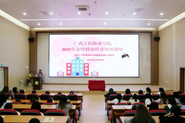 為了增強(qiáng)女大學(xué)生的自我健康保護(hù)意識及疾病防治意識,2021年10月28日—29日晚,我校邀請平果市老科協(xié)副會長滕江華醫(yī)生在學(xué)校圖文信息大樓報(bào)告廳開展了兩場女性健康科普知識專題講座,各二級學(xué)院大一、大二女生代表分別參加了講座。