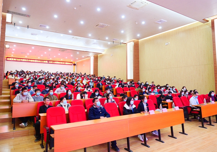 呂偉斌書記作總結(jié)發(fā)言,指出唐教授的報(bào)告內(nèi)容豐富、理論深邃、觀點(diǎn)鮮明、講述深刻、過程生動(dòng)、啟發(fā)性強(qiáng),給全校教職工帶來了一場(chǎng)非常生動(dòng)精彩的報(bào)告。呂書記要求全校教職工、黨員干部要以此次報(bào)告會(huì)為契機(jī),以習(xí)近平新時(shí)代中國特色社會(huì)主義思想為指導(dǎo),深入學(xué)習(xí)貫徹習(xí)近平總書記關(guān)于教育的重要論述,不斷增強(qiáng)“四個(gè)意識(shí)”,堅(jiān)定“四個(gè)自信”,做到“兩個(gè)維護(hù)”。全面落實(shí)黨的教育方針,堅(jiān)持社會(huì)主義辦學(xué)方向,以立德樹人為根本,不忘初心、牢記使命,擔(dān)當(dāng)實(shí)干,勇毅前行,切實(shí)推動(dòng)我校教育事業(yè)高質(zhì)量發(fā)展,辦好人民滿意的教育。