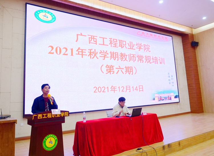 12月14日下午,廣西教育廳原巡視員唐耀華教授在學(xué)校圖文信息大樓一樓學(xué)術(shù)報(bào)告廳作主題為“全面貫徹習(xí)近平新時(shí)代中國特色社會(huì)主義思想,辦好人民滿意的教育”專題報(bào)告。學(xué)校黨委書記呂偉斌,副校長吳先夏,校長助理、人事處處長蔣茂麗,校長助理覃清香等校級(jí)領(lǐng)導(dǎo),各部門負(fù)責(zé)人、各黨支部書記、行政人員、輔導(dǎo)員、專任教師等400多人參加報(bào)告會(huì)。報(bào)告會(huì)由呂偉斌主持。