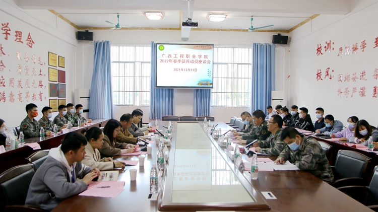2022年春季征兵工作已經(jīng)開始,為提高學校征兵工作參與人員的專業(yè)性和規(guī)范性,12月13日,廣西平果市人武部主要領導來廣西工程職業(yè)學院開展征兵工作動員。學校紀委書記李益、校長助理黃秋霞,汽車與機電學院副院長梁欣欣、國防科技學院副院長李捷、學生工作處科長范玉翠,各二級學院學生科科長、輔導員代表和軍事協(xié)會學生代表參加了動員座談會。