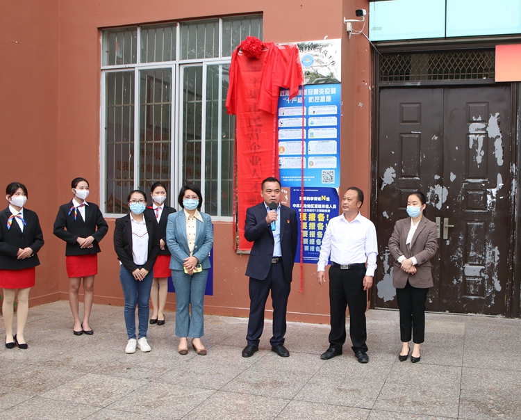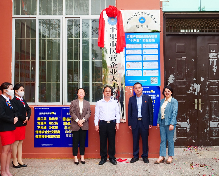 平果市委常委、統(tǒng)戰(zhàn)部部長韋昌濤與學(xué)校董事長李益為平果市民營經(jīng)濟(jì)統(tǒng)戰(zhàn)工作聯(lián)絡(luò)站、平果市民營企業(yè)人才孵化基地揭牌。