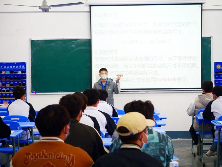藍(lán)一平老師在講授《公差配合與測(cè)量技術(shù)》課程