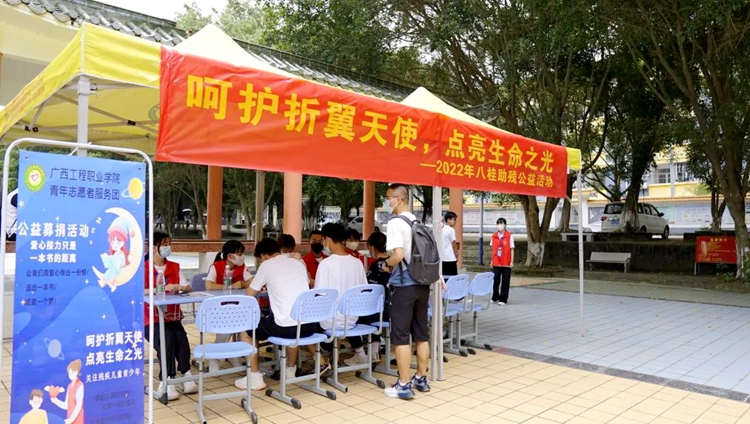 愛心無止境,助殘見真情。2022年5月18日—19日,廣西工程職業(yè)學(xué)院青年志愿者服務(wù)團(tuán)在第一食堂文化長(zhǎng)廊區(qū)開展“呵護(hù)折翼天使,點(diǎn)亮生命之光”八桂助殘公益活動(dòng)?;顒?dòng)旨在大力弘揚(yáng)人道主義精神,發(fā)揚(yáng)扶弱助殘的傳統(tǒng)美德,在校園內(nèi)營(yíng)造關(guān)愛殘疾人的良好氛圍。