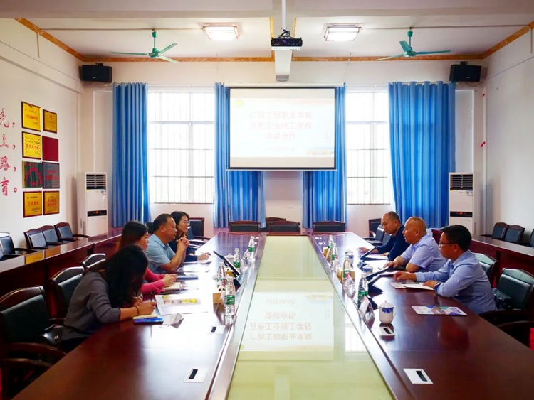 5月25日,百色工業(yè)技工學(xué)校校長許云涌、副校長蘇健、辦公室主任王精明等一行4人蒞臨廣西工程職業(yè)學(xué)院洽談校際合作。學(xué)校對(duì)許云涌校長一行的到來表示熱烈歡迎。雙方座談會(huì)在圖書館會(huì)議室舉行,學(xué)校董事長李益出席了會(huì)議,校長辦公室、招生就業(yè)處、教務(wù)處等相關(guān)職能部門負(fù)責(zé)人參加了會(huì)議。