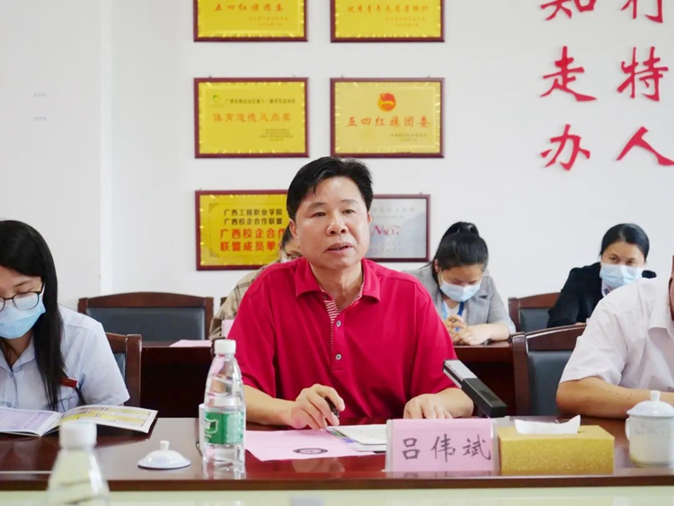 李益董事長(zhǎng)致歡迎辭,他對(duì)蔣瀚洲主任一行來校指導(dǎo)工作表示熱烈歡迎,并指出,廣西工程職業(yè)學(xué)院辦學(xué)15年來,為地方經(jīng)濟(jì)和社會(huì)發(fā)展輸送了幾萬(wàn)名急需的高級(jí)技術(shù)技能型人才,成為了百色市重要的技術(shù)技能人才輸送基地。