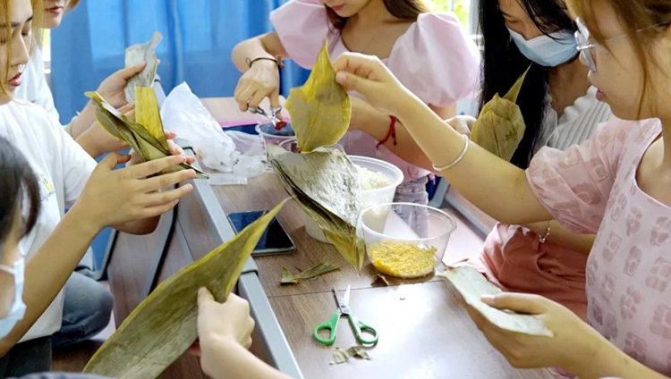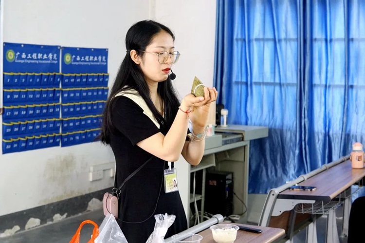 吃粽子是端午節(jié)的重要習(xí)俗之一,為切身體驗(yàn)端午節(jié)美食文化,教育學(xué)院唐肖麗老師把包粽子的食材帶進(jìn)課堂,讓同學(xué)們親身上陣,親自體會(huì)民俗文化, 培育文明新風(fēng)。
