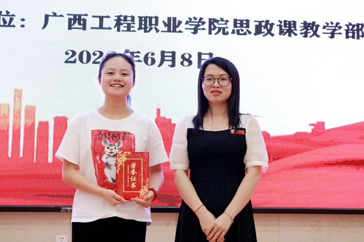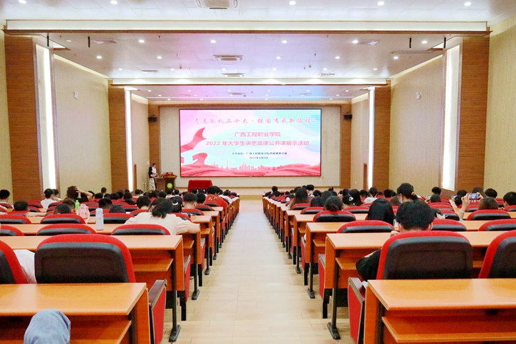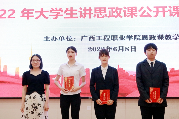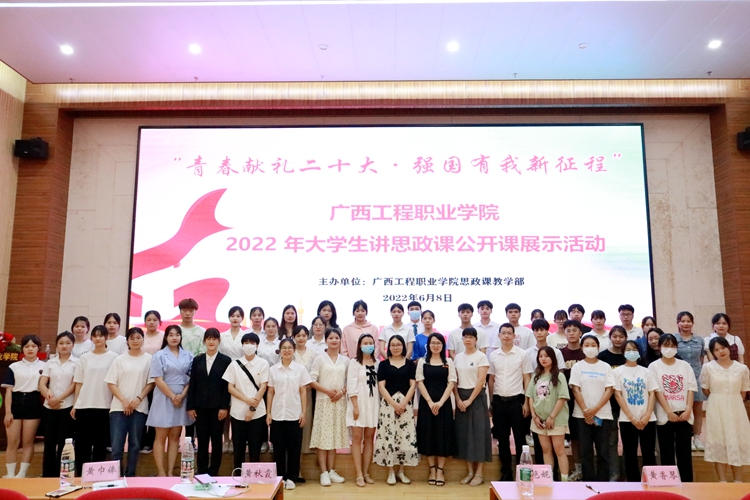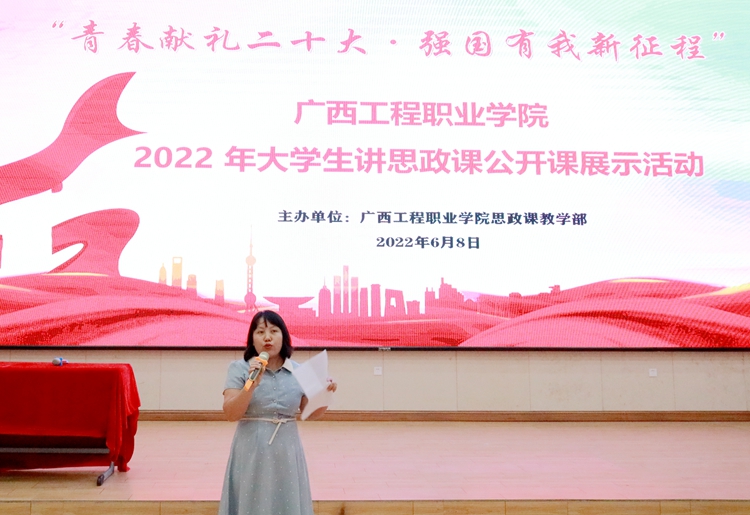 6月8日晚,由思政課教學(xué)部承辦的廣西工程職業(yè)學(xué)院2022年大學(xué)生講思政課公開(kāi)課比賽活動(dòng)在學(xué)校圖文信息大樓一樓學(xué)術(shù)報(bào)告廳舉行。學(xué)校黨委副書(shū)記黃秋霞、副校長(zhǎng)羅艷妮副教授、思政課教學(xué)部主任黃巾俸、黨委辦公室副主任黃香琴、思政課教師吳秋林出席本次比賽活動(dòng)并擔(dān)任比賽評(píng)委。全體思政課教師及兩百多名學(xué)生到場(chǎng)觀摩。
