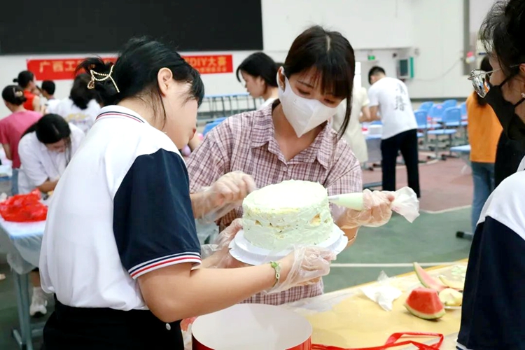 為了豐富同學(xué)們的校園生活,培養(yǎng)動(dòng)手實(shí)踐能力、創(chuàng)新意識(shí)和團(tuán)隊(duì)精神,增強(qiáng)師生間的溝通交流,構(gòu)建和諧校園,6月11日,廣西工程職業(yè)學(xué)院在體育館舉行第五屆蛋糕DIY大賽。學(xué)校黨委副書記黃秋霞,黨委委員、學(xué)生工作處副處長李麗詩及韋遠(yuǎn)安、范玉翠、潘鳳嬌等老師出席開幕式,參賽隊(duì)伍及各個(gè)學(xué)院的師生代表、社團(tuán)代表參加了活動(dòng)。