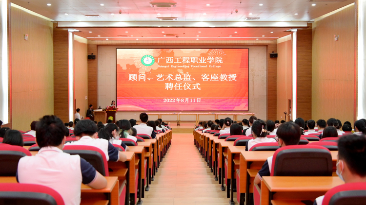 隨后,我校在圖文信息大樓一樓學(xué)術(shù)報告廳舉行“廣西工程職業(yè)學(xué)院顧問、藝術(shù)總監(jiān)、客座教授聘任儀式”,聘任儀式由黨委副書記黃秋霞主持。