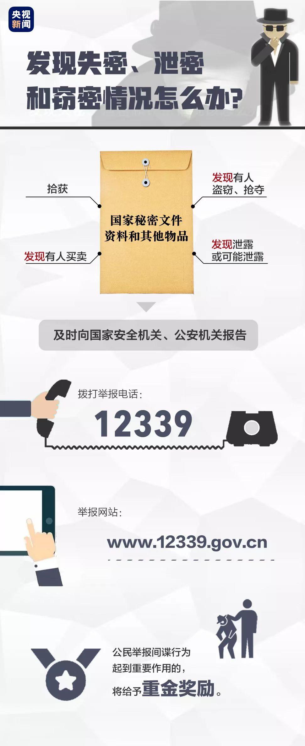 公民、組織可以通過國家安全機關12339舉報受理電話、網絡舉報受理平臺或者國家安全機關公布的其他舉報方式,舉報間諜行為和其他危害國家安全的行為,以及各類反間諜安全防范問題線索。