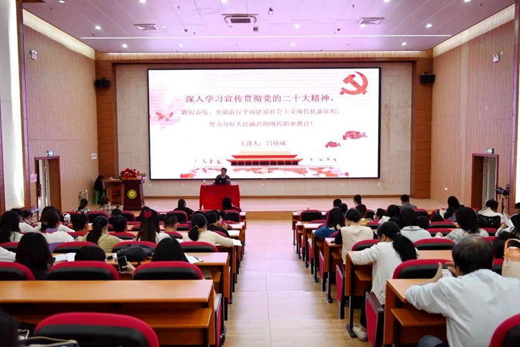 呂書記強調(diào),要把黨的二十大精神融入思政課堂,要對黨的二十大精神進行廣泛深入宣講,全校上下做到人人主動學、人人主動講、人人主動做的良好學習宣傳貫徹氛圍。全校領導干部要做到一分部署,九分落實,把黨的二十大精神落實到學校教育教學改革發(fā)展的各方面和全過程,做到學深、悟透、做實。全校黨員領導干部教師要立足本職工作,深入學習宣傳貫徹黨的二十大精神,全面貫徹黨的教育方針,落實立德樹人根本任務,積極推進教育教學改革,提升職業(yè)教育現(xiàn)代化水平,努力辦好人民滿意的現(xiàn)代化職業(yè)教育,努力培養(yǎng)德智體美勞全面發(fā)展的社會主義建設者和接班人。