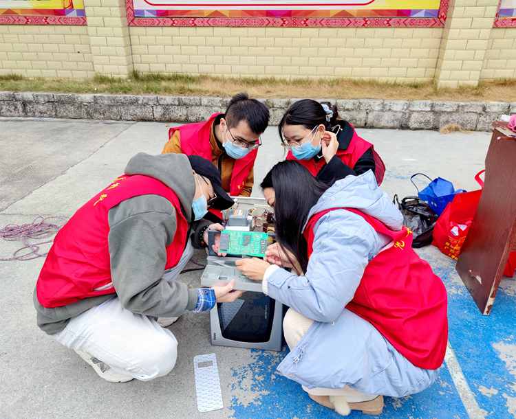 學校家電維修服務隊為居民免費維修家電
