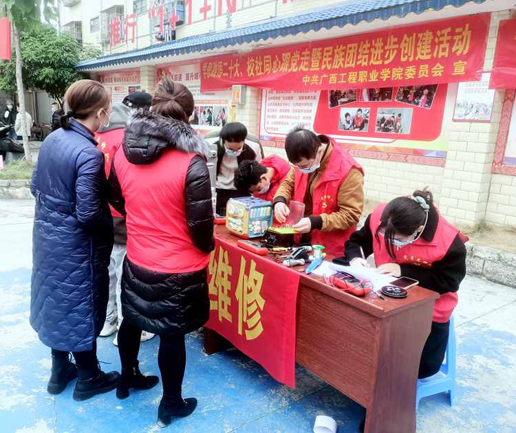 在活動中,學校選派20多名師生黨員志愿者,組建文化服務隊和家電維修服務隊,利用專長知識為社區(qū)居民提供豐富的志愿服務活動,暢通服務群眾“最后一公里”。學校文化服務隊開設童心筑夢繪畫課堂,用專業(yè)特長送文化進社區(qū),輔導社區(qū)兒童繪制愛國題材、民族團結題材美術作品。家電維修服務隊開展免費家電維修活動,送技能進社區(qū),幫助社區(qū)居民維修微波爐、電飯鍋、電風扇、喇叭等小家電,為社區(qū)群眾提供了力所能及的惠民服務。