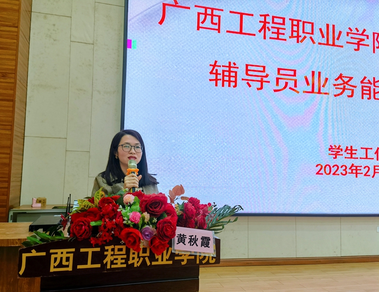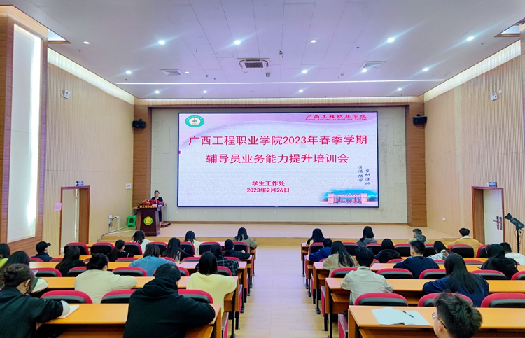 為深入學(xué)習(xí)貫徹黨的二十大精神,進(jìn)一步落實(shí)立德樹(shù)人根本任務(wù),全面提升輔導(dǎo)員思政素質(zhì)和業(yè)務(wù)工作能力,推動(dòng)輔導(dǎo)員專業(yè)化、職業(yè)化建設(shè),使新學(xué)期學(xué)生工作謀好局、開(kāi)好篇,確保各項(xiàng)工作扎實(shí)有序推進(jìn)。2023年2月26日上午,廣西工程職業(yè)學(xué)院2023年春季學(xué)期輔導(dǎo)員業(yè)務(wù)能力提升培訓(xùn)會(huì)在圖文信息一樓學(xué)術(shù)報(bào)告廳舉行,學(xué)校黨委副書(shū)記黃秋霞出席培訓(xùn)會(huì),學(xué)生工作處副處長(zhǎng)李麗詩(shī)主持培訓(xùn)會(huì),全體輔導(dǎo)員參加培訓(xùn)。