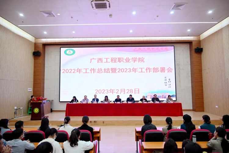 2022年是輝煌和不平凡的一年,在這一年,全體師生克服了新冠肺炎疫情帶來的極大困難,砥礪拼搏、創(chuàng)新進(jìn)取,扎實履職盡責(zé)、狠抓工作落實,圓滿完成了各項工作任務(wù),推進(jìn)了各項教育事業(yè)的全面發(fā)展,回望過去,每一幀都寫滿了主動與積極、奮斗與努力、執(zhí)著與卓越。今天我們在這里回眸,聆聽豐收的禮贊,今天我們在這里展望,共賞綻放的新花。2023年2月28日,廣西工程職業(yè)學(xué)院2022年度工作總結(jié)暨2023年工作部署會在圖文信息大樓報告廳順利舉行。學(xué)校黨政領(lǐng)導(dǎo)班子出席大會,大會由羅艷妮副校長主持。