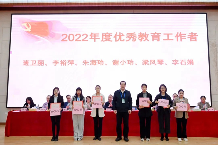 蒙本曼書記為榮獲優(yōu)秀教育工作者的教師頒獎