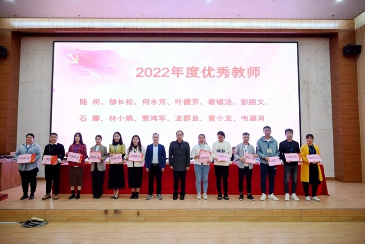 副校長吳先夏、黃德偉為榮獲優(yōu)秀教師稱號的教師頒獎