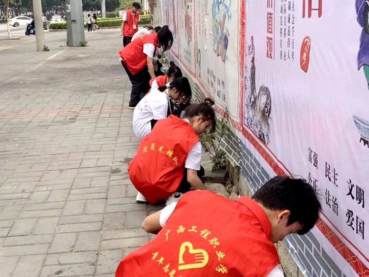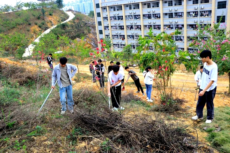 在黨委副書記黃秋霞的帶領(lǐng)下,學(xué)校團(tuán)委、各二級(jí)學(xué)院老師組織同學(xué)們積極投入到除草、清潔衛(wèi)生等勞動(dòng)活動(dòng)中,通過清理垃圾、撿石塊、撿枯樹枝、除雜草等活動(dòng)參與環(huán)境美化。