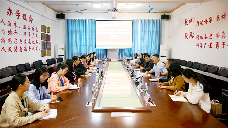 在雙方共建高校教學(xué)研討會(huì)上,我校黨委書(shū)記蒙本曼匯報(bào)了學(xué)校思政建設(shè)基本情況,廣西建設(shè)職業(yè)技術(shù)學(xué)院馬克思主義學(xué)院邱嵐院長(zhǎng)分享了其校在思政課教育教學(xué)上的特色做法和取得的成效。