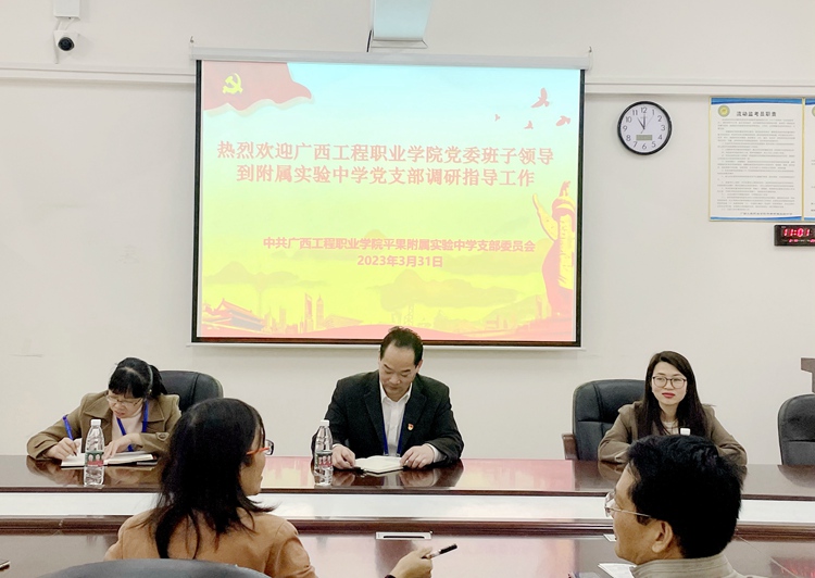 調(diào)研組在學(xué)校附屬中職學(xué)校黨支部、百色工程職業(yè)技術(shù)學(xué)校黨支部調(diào)研