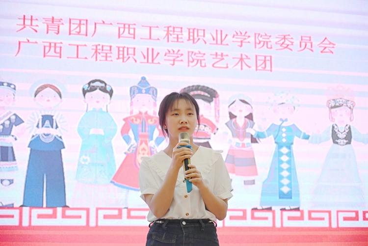 黃秋霞副書記指出,民族文化是一個(gè)民族的靈魂,它反映了一個(gè)民族的精神面貌。今天的舞臺(tái)是弘揚(yáng)民族文化,展示同學(xué)們精彩技藝、豐富校園生活的亮麗舞臺(tái),希望同學(xué)們用藝術(shù)點(diǎn)燃激情,用激情創(chuàng)造輝煌,用輝煌唱出精彩,唱出工程學(xué)子昂揚(yáng)向上的精神狀態(tài),唱出這個(gè)偉大時(shí)代的最強(qiáng)旋律,唱出我們美好的未來!讓民歌唱響校園,進(jìn)一步增強(qiáng)民族自尊心、自信心和自豪感,堅(jiān)定信念、迎難而上、共創(chuàng)佳績,為學(xué)校的建設(shè)和發(fā)展作出新的貢獻(xiàn)。