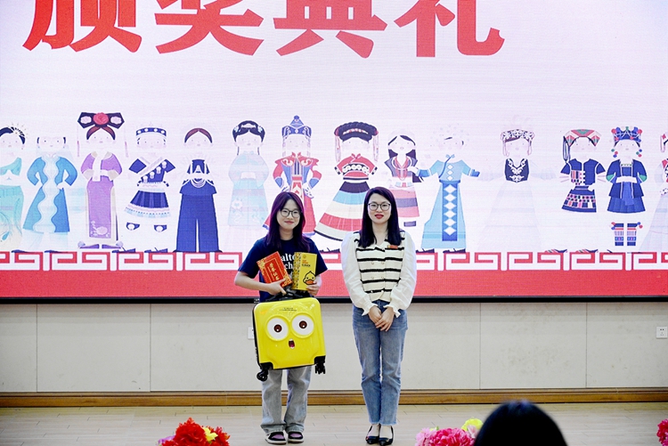 校黨委副書記黃秋霞為榮獲一等獎(jiǎng)的選手頒獎(jiǎng)
