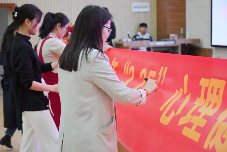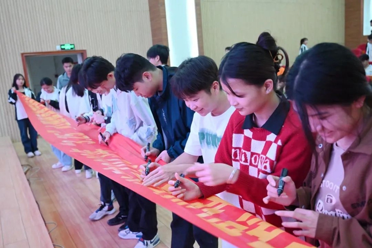 大家紛紛在“廣西工程職業(yè)學(xué)院2023年‘3·25’心理健康教育活動(dòng)季啟動(dòng)儀式”的宣傳橫幅上進(jìn)行簽字,承諾用積極心態(tài)面對(duì)生活,做健康生活、快樂(lè)學(xué)習(xí),心里充滿陽(yáng)光,積極向上的人。