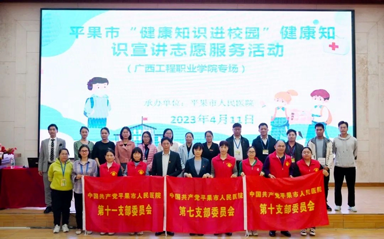 為普及健康知識,增強(qiáng)健康意識,倡導(dǎo)健康文明的生活方式,4月11日下午,平果市“健康知識進(jìn)校園”健康知識宣講志愿服務(wù)活動(dòng)在學(xué)校圖文信息大樓一樓報(bào)告廳舉行。平果市人民醫(yī)院感染性疾病科、感染管理科主任莊大鵬,平果市人民醫(yī)院心血管內(nèi)科副主任麻翠仁醫(yī)生分別作健康知識專題講座。此次活動(dòng)系我校2023年春季學(xué)期第六期教師常規(guī)培訓(xùn)。全體教職工參加了專題培訓(xùn),培訓(xùn)由學(xué)生工作處副處長李麗詩主持。