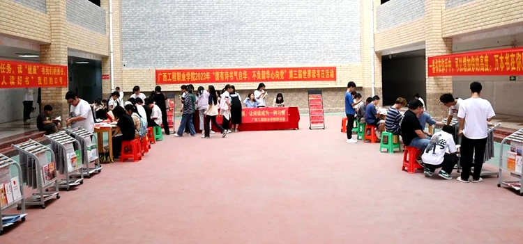 正當(dāng)春日時,萬物始更新。2023年4月19日,廣西工程職業(yè)學(xué)院在圖文信息大樓舉行2023年“腹有詩書氣自華,不負(fù)韶華心向黨”第三屆世界讀書日活動?;顒臃譃閮蓚€項目,一項是在大廳開展書展活動,一項是舉行學(xué)校第三屆世界讀書日啟動儀式并進(jìn)行閱讀分享。