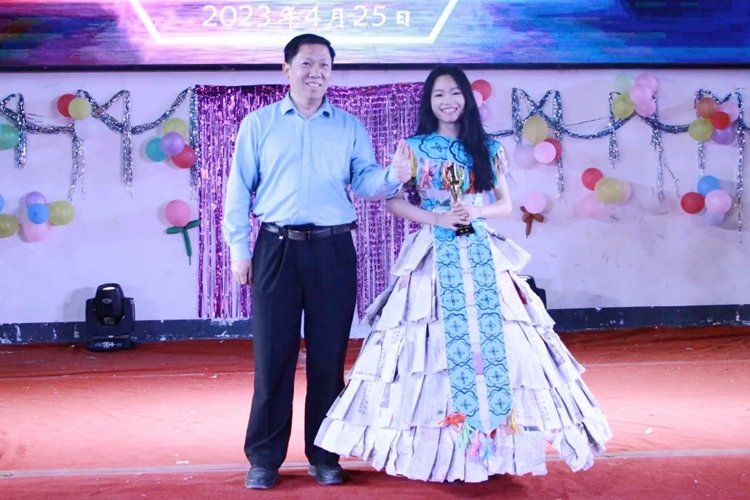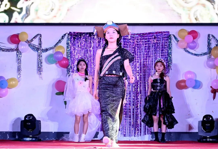 教育學院黨支部副書記盧燕梅致辭,她指出,學院開展環(huán)保時裝秀活動,就是要倡導綠色環(huán)保,鼓勵同學們用生活中的廢舊材料,二次利用加工并設(shè)計出各種風格的時裝,融入民族服裝元素,在T臺上向全院師生展示“廢棄物”也可以變得很美。活動既為廣大學生提供了展現(xiàn)自我、表現(xiàn)自我、提高自信的舞臺,又弘揚了中華優(yōu)秀傳統(tǒng)文化,展示民族風情,增強文化自信。希望同學們通過本次活動,傳遞環(huán)保理念,提升藝術(shù)修養(yǎng)。