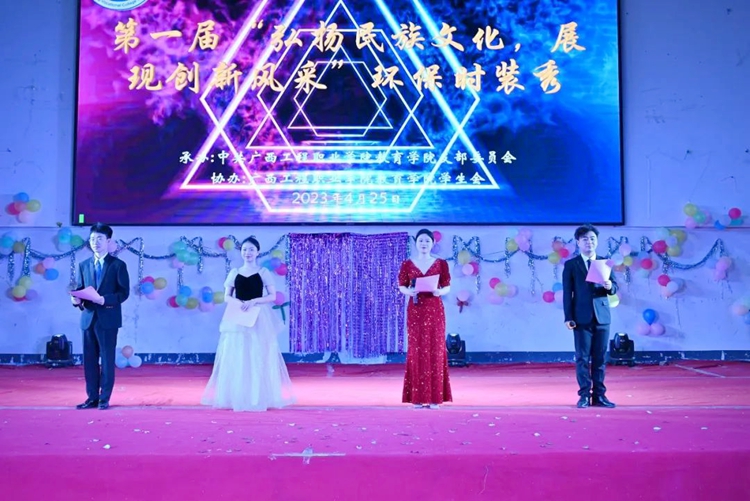 “壯族三月好晴天,紫荊盛開歌舞宣”,為弘揚民族文化,傳承民族精神,展現(xiàn)因環(huán)保更美麗的全新理念,拓寬廣大同學發(fā)展綠色環(huán)保的創(chuàng)新思路。2023年4月25日晚,廣西工程職業(yè)學院教育學院在體育館舉行第一屆“弘揚民族文化,展現(xiàn)創(chuàng)新風采”環(huán)保時裝秀。
