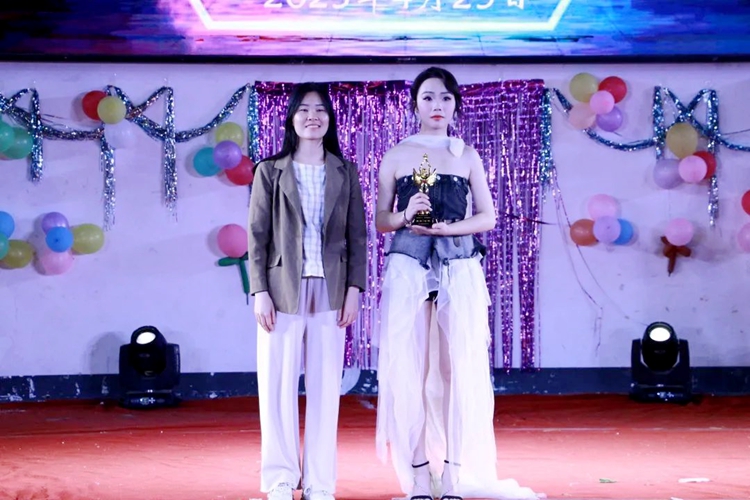 陶輝老師宣布獲獎名單,出席時裝秀現(xiàn)場的領(lǐng)導老師為獲獎的學生頒發(fā)榮譽證書。