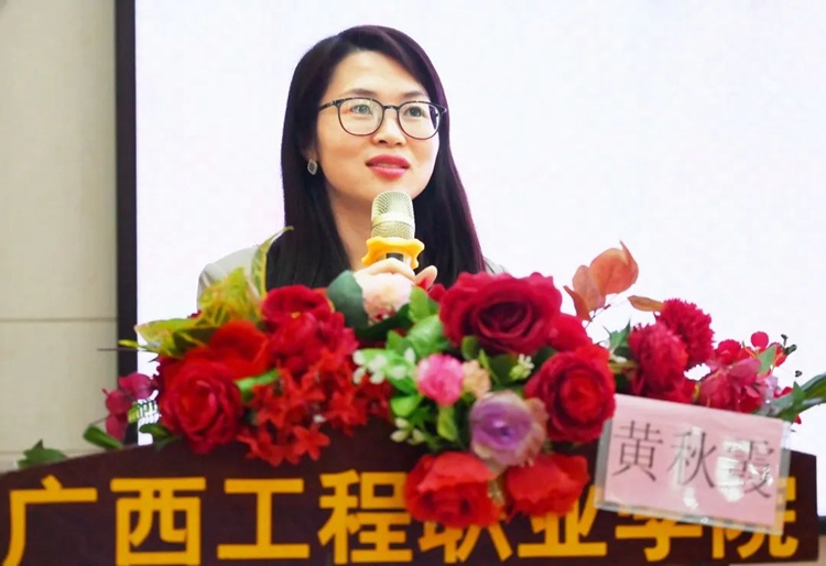 學(xué)校黨委副書記黃秋霞宣布廣西工程職業(yè)學(xué)院2023年“青春筑夢新時代,資助伴我向未來”學(xué)生資助政策宣傳月啟動儀式開始。