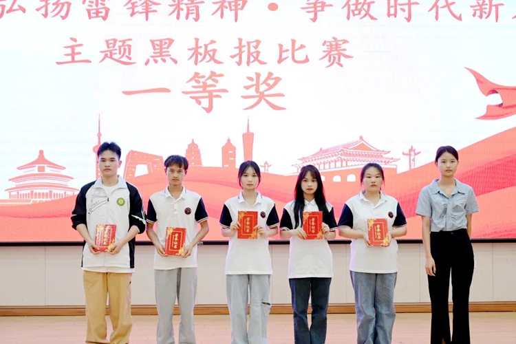 經(jīng)濟管理學院學生科科長李東英為獲得2023年“弘揚雷鋒精神·爭做時代新人”主題黑板報比賽二等獎的代表頒獎