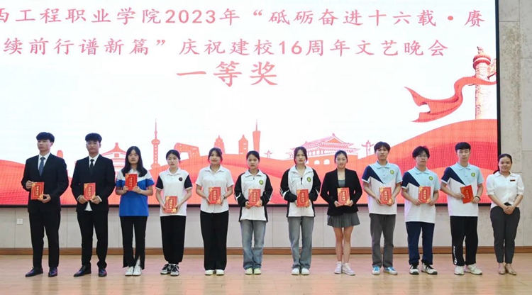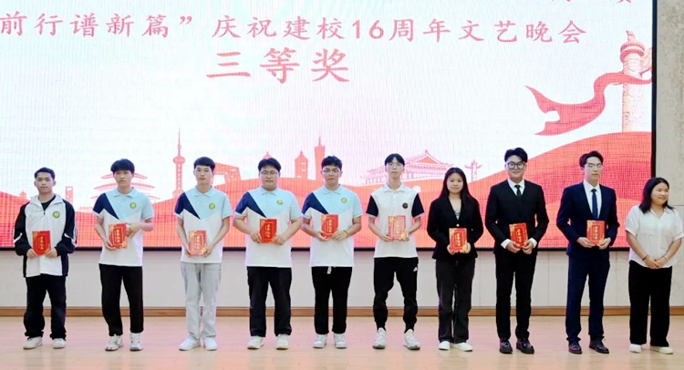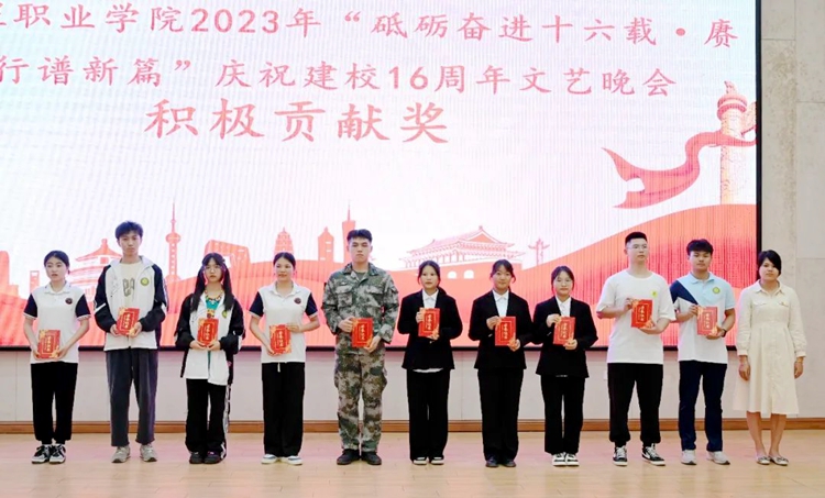 校團委副書記陳國昇為獲得2023年“砥礪奮進十六載·賡續(xù)前行譜新篇”慶祝建校16周年文藝晚會二等獎的代表頒獎