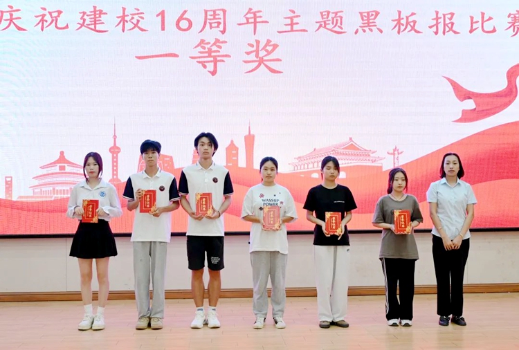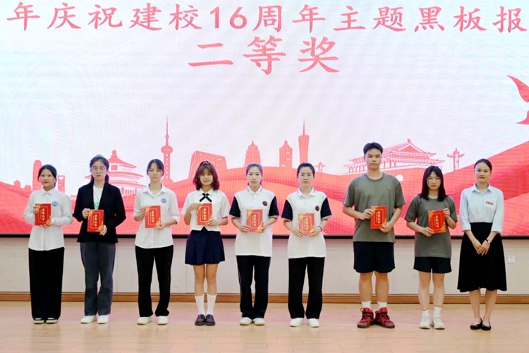 土木工程學院黨總支副書記朱海玲為獲得2023年慶祝建校16周年主題黑板報比賽二等獎的代表頒獎