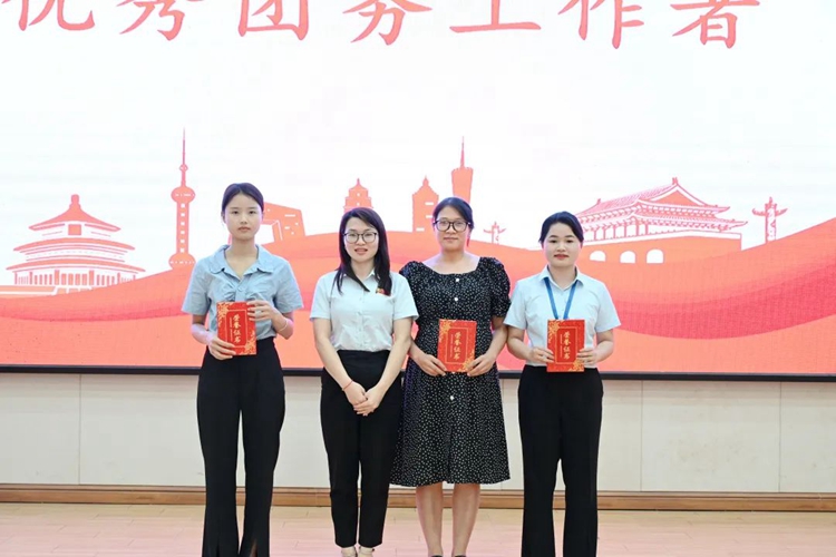 學校黨委副書記黃秋霞為優(yōu)秀團務(wù)工作者頒獎