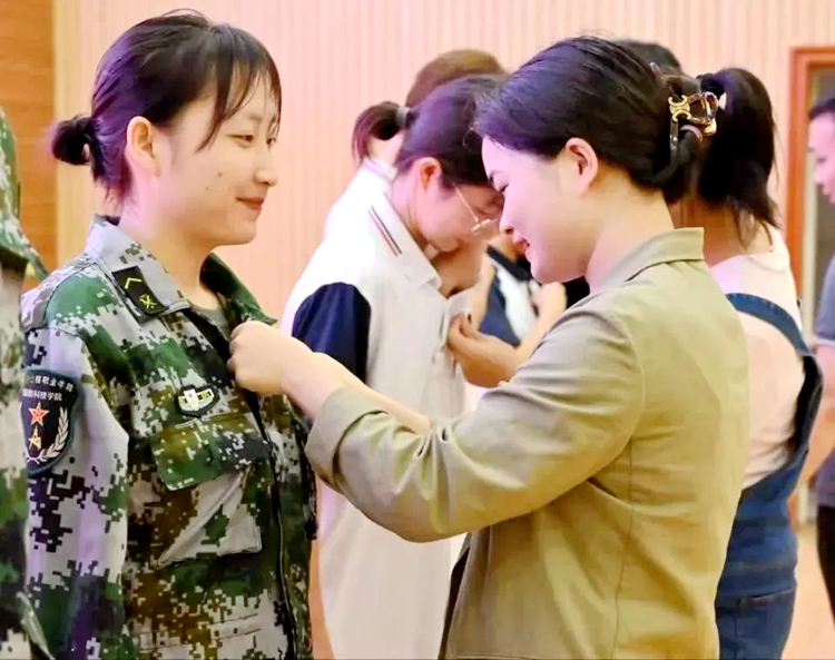 學(xué)校團(tuán)委副書(shū)記李麗清宣布2023年新團(tuán)員名單,黨委副書(shū)記黃秋霞,學(xué)校團(tuán)委副書(shū)記李麗清、陳國(guó)昇及各二級(jí)學(xué)院分團(tuán)委書(shū)記為新團(tuán)員代表佩戴團(tuán)徽。