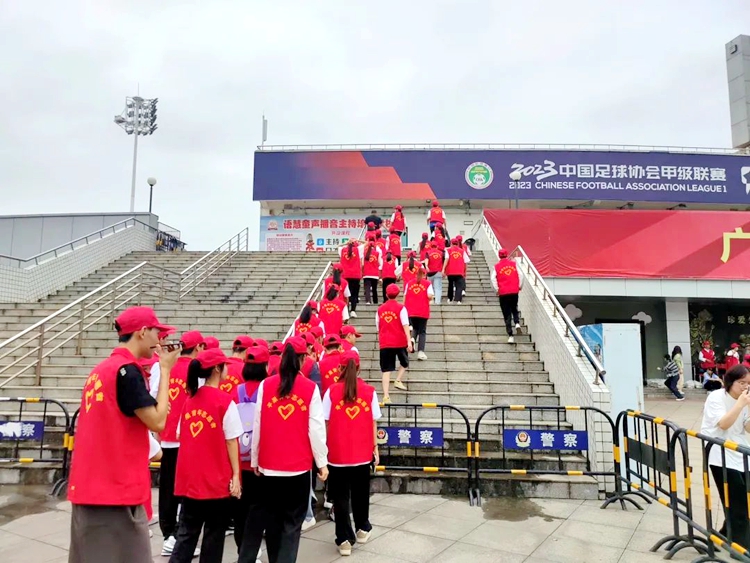 比賽當天,各地球迷紛至沓來,人群中有許多“紅馬甲”的身影,遍布在平果體育場及周邊區(qū)域,為觀眾球迷提供貼心周到的志愿服務,為賽事貢獻青春力量。