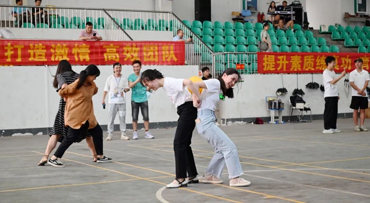 在素質(zhì)拓展環(huán)節(jié),來(lái)自各個(gè)二級(jí)學(xué)院輔導(dǎo)員們分為紅隊(duì)、黃隊(duì)、藍(lán)隊(duì)、橙隊(duì)、綠隊(duì)、紫隊(duì)等六支隊(duì)伍,分別進(jìn)行了“螃蟹背西瓜”“兩人三足”“穿越火線”“算零錢”“拔河比賽”等形式多樣、內(nèi)容豐富的團(tuán)建項(xiàng)目,各組隊(duì)員配合默契,團(tuán)結(jié)協(xié)作,完成了一個(gè)個(gè)團(tuán)建任務(wù)。