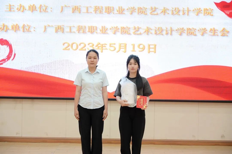 藝術(shù)設(shè)計學(xué)院辦公室主任王艷為榮獲二等獎的同學(xué)頒獎
