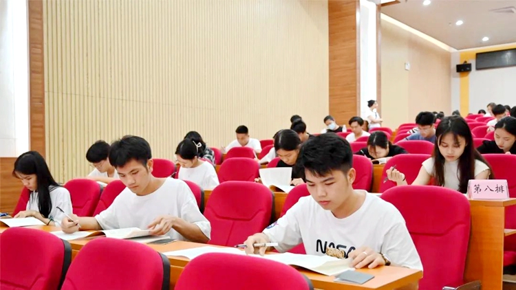 2023年5月26日,學(xué)校黨委黨校舉行2023年黨員發(fā)展對(duì)象培訓(xùn)班結(jié)業(yè)考試,共有232名黨員發(fā)展對(duì)象學(xué)員參加培訓(xùn)班結(jié)業(yè)考試。此次結(jié)業(yè)考試共開(kāi)設(shè)2個(gè)考場(chǎng),分別設(shè)在圖文信息大樓1樓學(xué)術(shù)報(bào)告廳和5樓學(xué)術(shù)報(bào)告廳??荚嚻陂g,學(xué)校黨委書(shū)記蒙本曼帶隊(duì)進(jìn)行了巡考檢查。