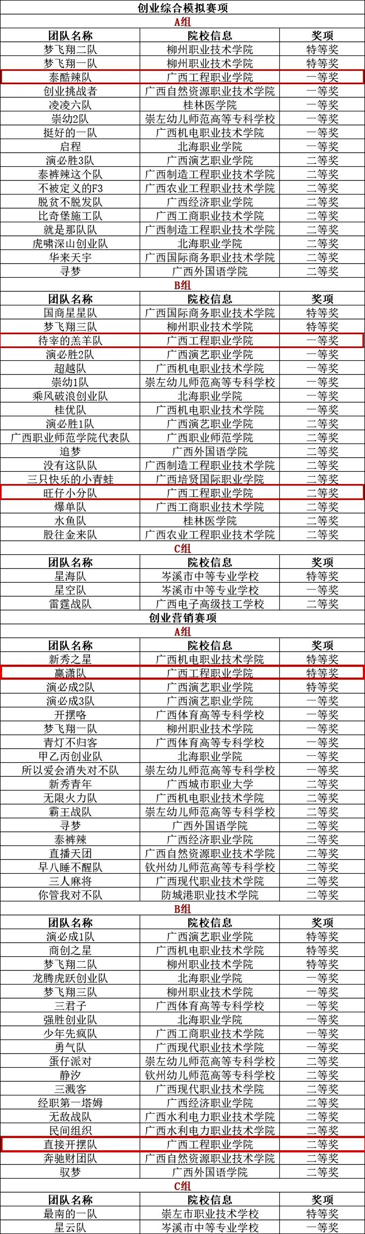 2023年6月10日—11日,2023年“學創(chuàng)杯”全國大學生創(chuàng)業(yè)綜合模擬大賽廣西賽區(qū)選拔賽(職教組)在柳州職業(yè)技術學院舉行,本次選拔賽(職教組)共有29所高校的130個隊伍參賽。我校經(jīng)濟管理學院石娜和雷紅老師帶領2020級會計專業(yè)張麗穎、2022級會計專業(yè)潘素敏,2021級市場專業(yè)凌偉杰等18名同學參加了此次比賽,并榮獲特等獎1項、一等獎2項、二等獎2項!