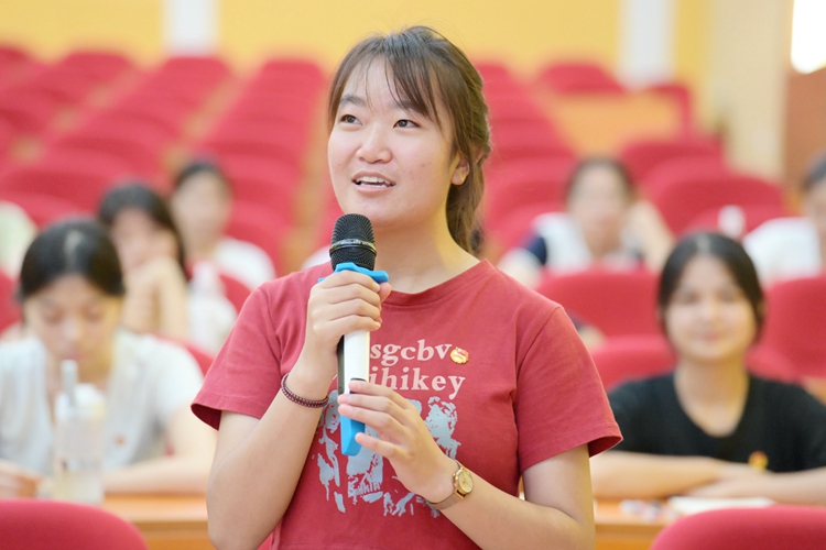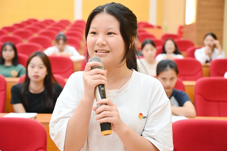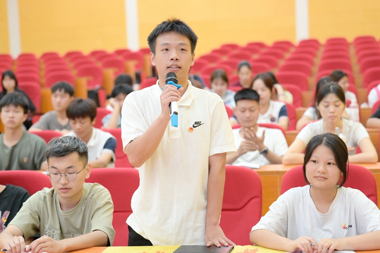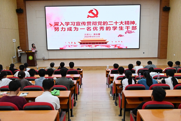 從中,同學(xué)們深入了解黨的二十大的主題,學(xué)習(xí)黨和國(guó)家發(fā)展的中心任務(wù),領(lǐng)會(huì)中國(guó)特色社會(huì)主義現(xiàn)代化的特征,深刻體悟了教育、科技、人才作為建成社會(huì)主義現(xiàn)代化強(qiáng)國(guó)基礎(chǔ)性、戰(zhàn)略性支撐的重要性。她結(jié)合習(xí)近平總書記在黨的二十大報(bào)告中對(duì)中國(guó)青年的殷切寄語:“懷抱夢(mèng)想又腳踏實(shí)地,敢想敢為又善作善成”,闡釋了學(xué)生干部的含義、作用、工作特點(diǎn)、具備的素質(zhì)與能力、掌握的工作方法、初心和使命。她結(jié)合自身多年的團(tuán)學(xué)工作經(jīng)歷,與同學(xué)們分享學(xué)生干部成長(zhǎng)的記憶故事,引導(dǎo)大家要身正言明,注重團(tuán)隊(duì)協(xié)作,全心全意為同學(xué)服務(wù),在持續(xù)奉獻(xiàn)的實(shí)踐中提升自我,在以身作則的示范中錘煉作風(fēng)。
